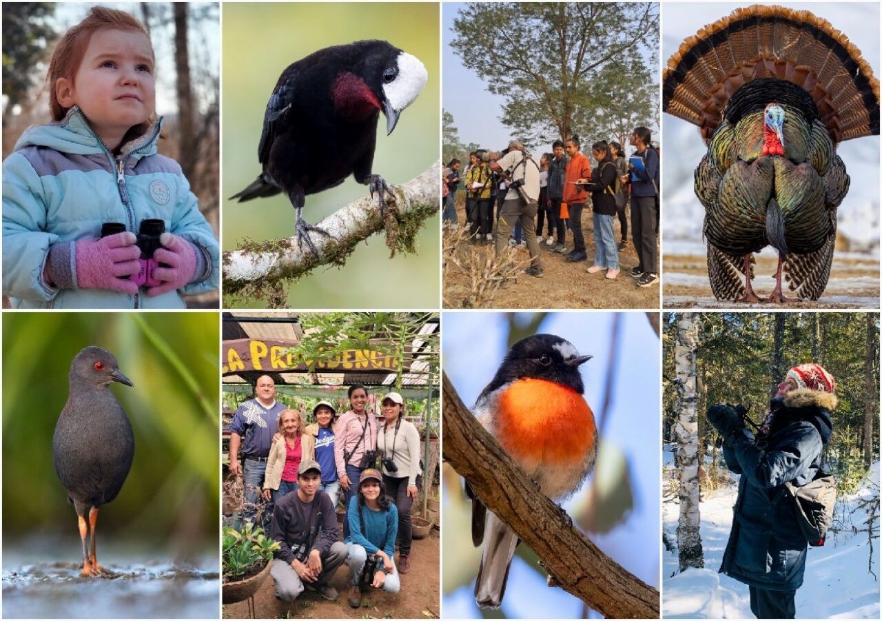 Photo credit: From birdcount.org homepage. Photos clockwise from top left: Michael Laughlin in United States, White-capped Tanager by Ben Lucking in Ecuador, Rofikul Islam in India, Wild Turkey by Arun Manoharan in United States, Roxane Filion in Canada, Scarlet Robin by Cedric Bear in Australia, Perla Laguna in Nicaragua, Spotless Crake by JJ Harrison in Australia.